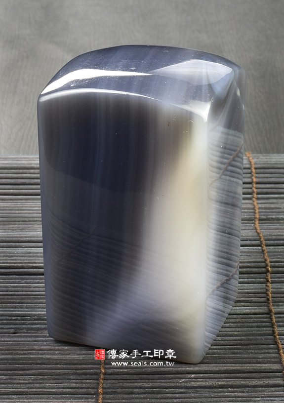 1. 傳家手工印章嚴選高級「原色瑪瑙」。瑪瑙的硬度很硬,大約是7度~7.5度,比重2.65,色彩相當有層次感。是頂級的印材之一。