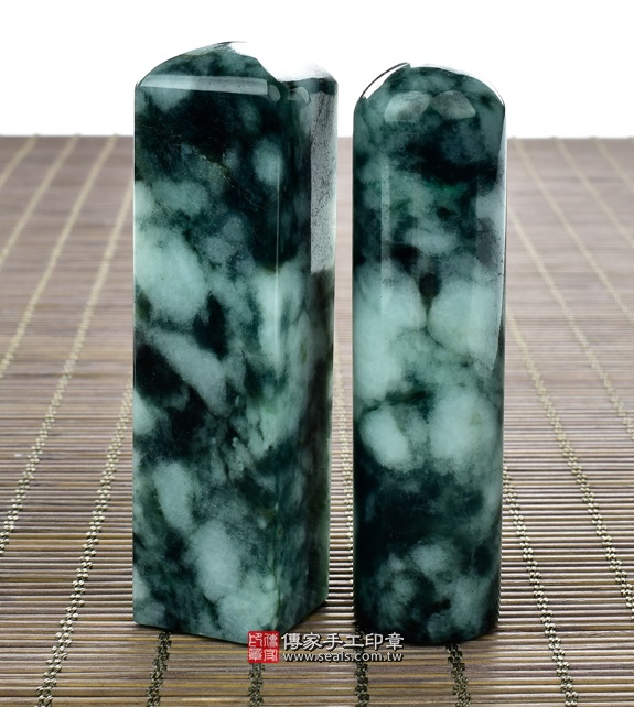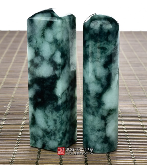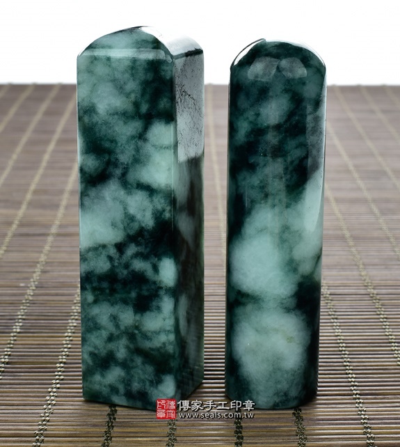 一. 傳家手工印章實際成品: 頂級花青種緬甸玉翡翠(一般型) 及 頂級花青種緬甸玉翡翠(加長型)
