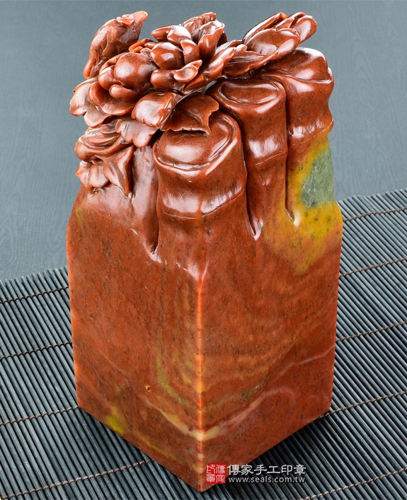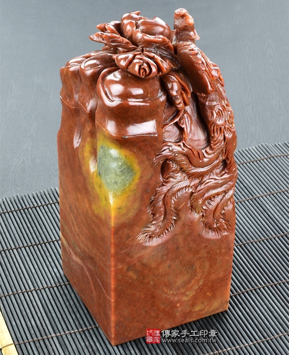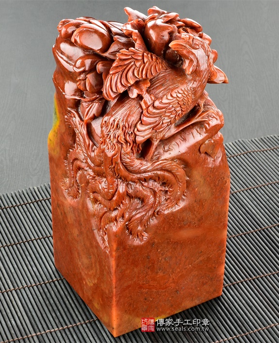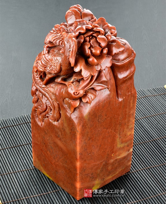 頂級中國壽山石精雕鳳凰牡丹及花開富貴:廟章、神明印章、大印章會依現貨尺寸不同,每一隻印章的定價都不一樣。