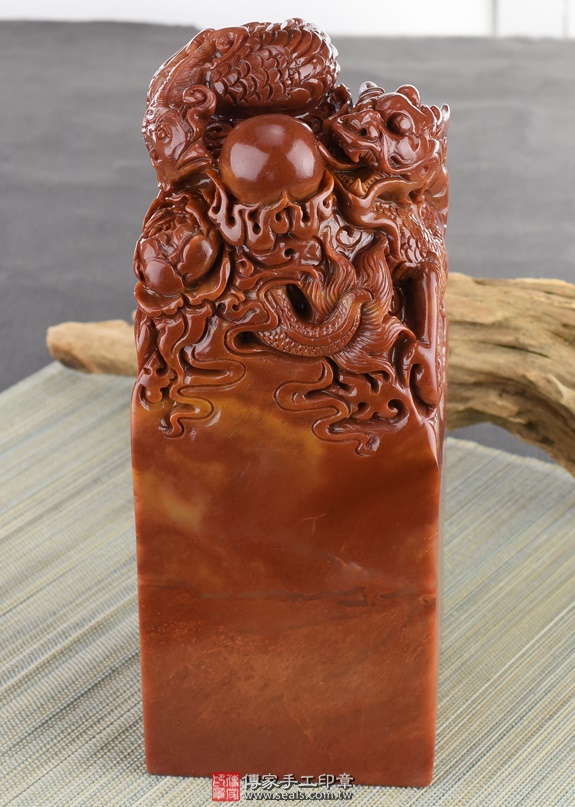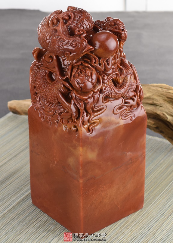 頂級中國壽山石精雕龍鳳守珠:廟章、神明印章、大印章(一)會依現貨尺寸不同,每一隻印章的定價都不一樣。