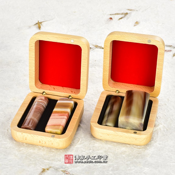 二. 喜歡木盒、竹盒、真牛皮皮紋盒的朋友,可以加價購買。傳家提供各種精美款式和材質的印章盒子,讓印章有一個屬於自己的家。