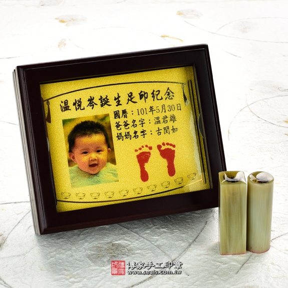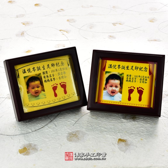 【嬰兒雙寶:玻璃木盒、金足印照片、臍帶印章、胎毛印章】
