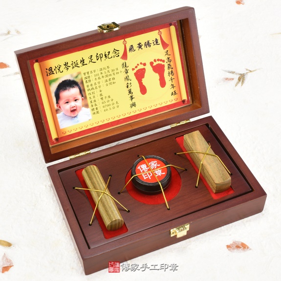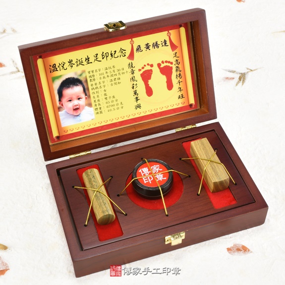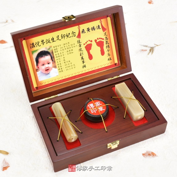 購買傳家嬰兒產品包含:(臍帶章、胎毛印章、胎毛筆、嬰兒三寶等...)金額超過2000元,免費贈送嬰兒成長古禮:「抓周、收涎、滿月剃頭」三選一。