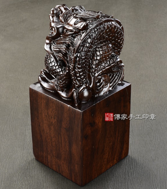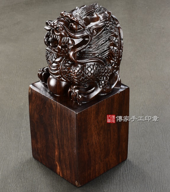 頂級南非黑檀木精雕龍:廟章、神明印章、大印章會依現貨尺寸不同,每一隻印章的定價都不一樣。