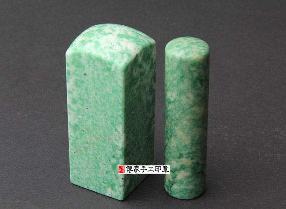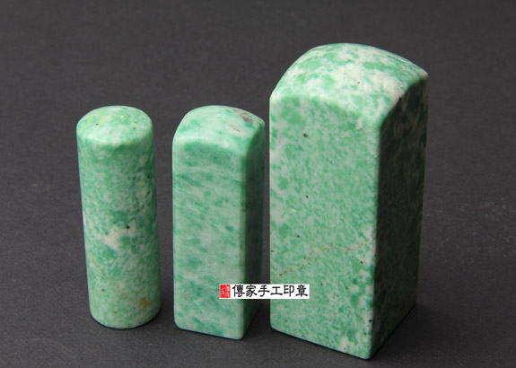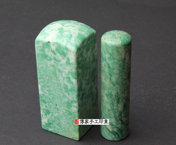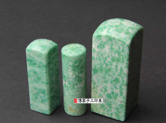 1. 傳家手工印章嚴選高級「青海玉印章」。青海玉產自青海省。這塊青海玉石,帶有綠色與白色相間的細顆粒、油性好、有顆粒感,其綠色與白色相間的顆粒形成強烈的對比感、主體鮮明,很有朝氣和力量。
