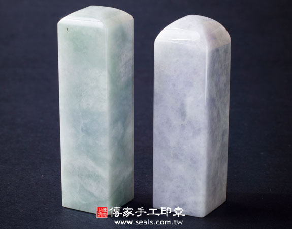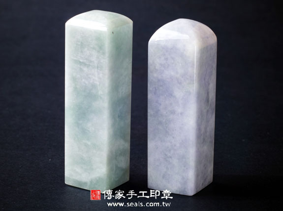 一. 傳家手工印章實際成品: 頂級豆種紫羅蘭緬甸玉翡翠(一般型) 及 頂級豆種紫羅蘭緬甸玉翡翠(加長型)