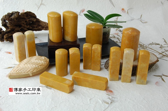 l 傳家手工印章嚴選高級「黃榕石」。黃榕石的硬度大約是4.5~5.5度,黃榕石的硬度不如璧玉,但對於中國人來說,『石之美者謂之玉』,也因為石材本身是金黃色,黃色是帶財的顏色,非常受到大家的喜愛。