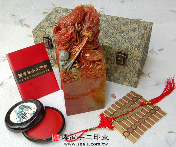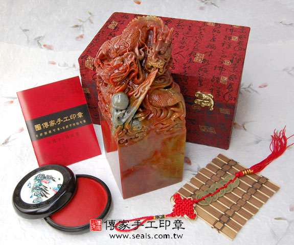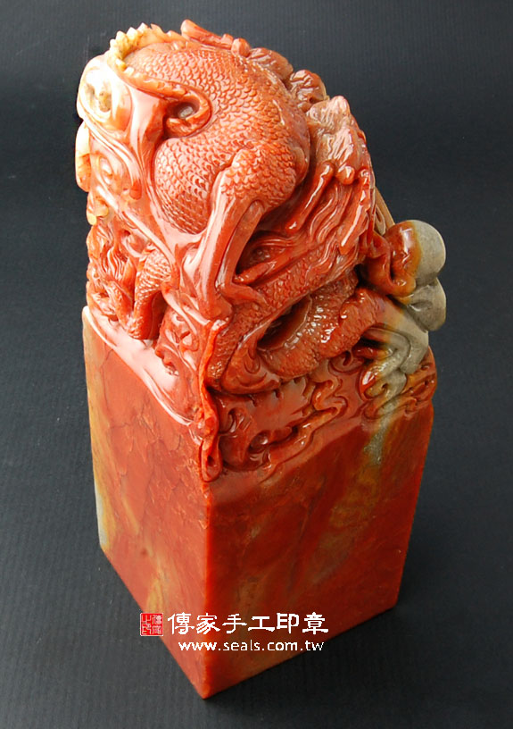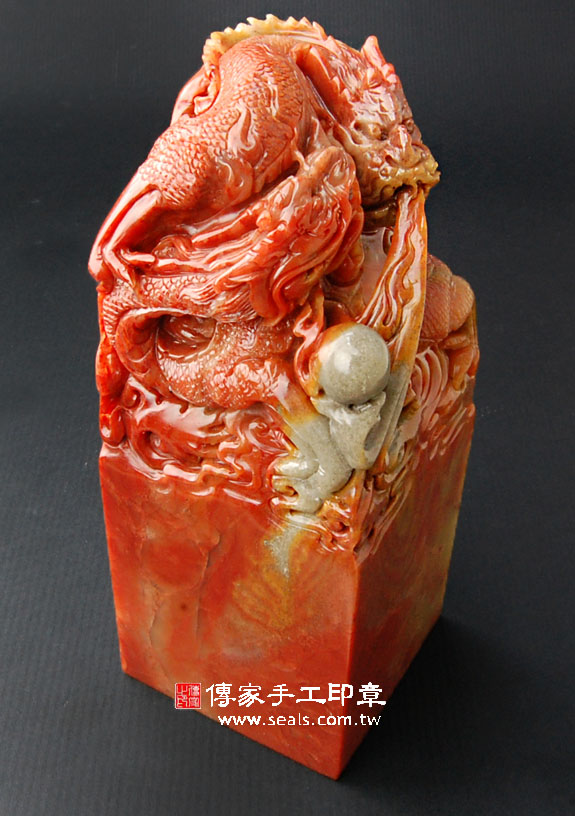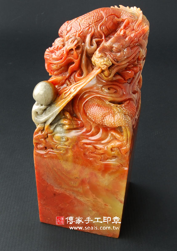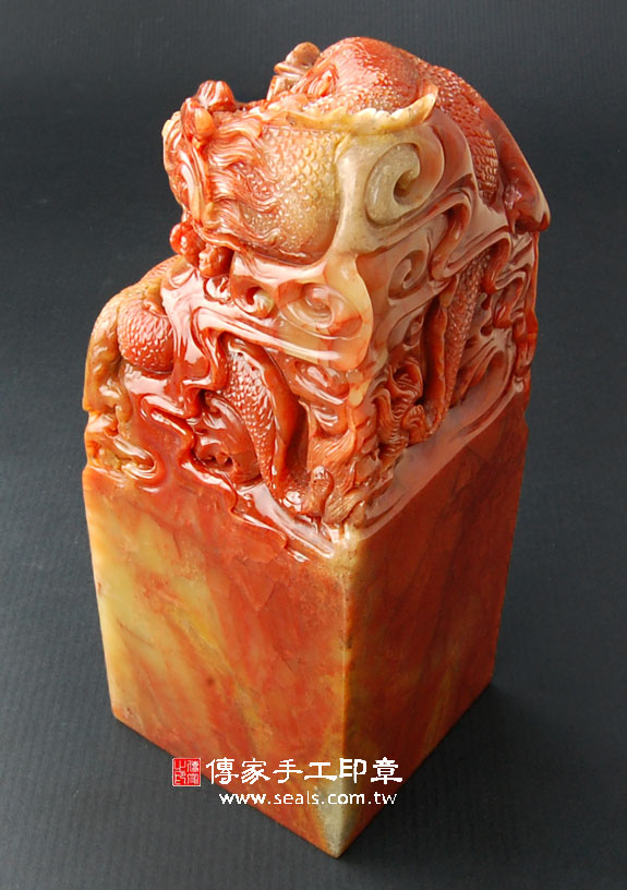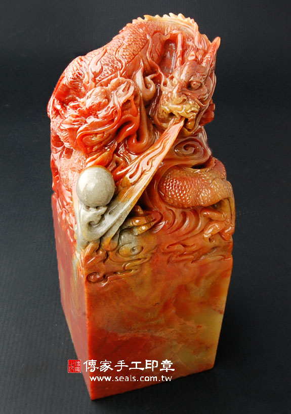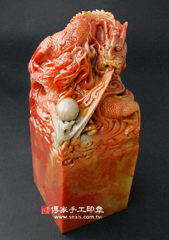 頂級中國壽山石精雕雙龍吐珠:廟章、神明印章、大印章(一)會依現貨尺寸不同,每一隻印章的定價都不一樣。