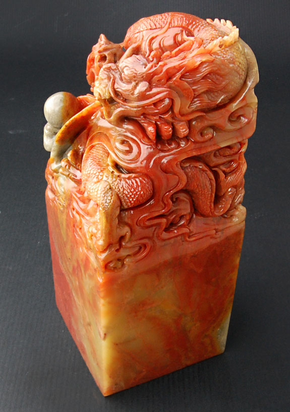 十六. 頂級中國壽山石精雕雙龍吐珠:廟章、神明印章、大印章(一)金額: