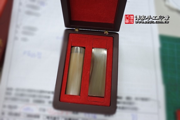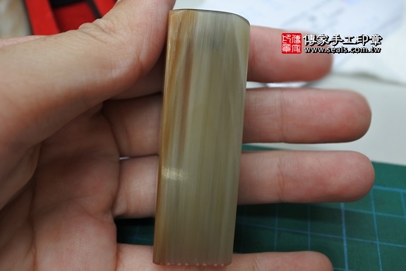 這是林爸爸為寶寶所挑選的印章材質,赤牛角,