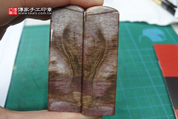這是陳先生與李小姐挑選的印章材質,木化石,使用木化石印章,